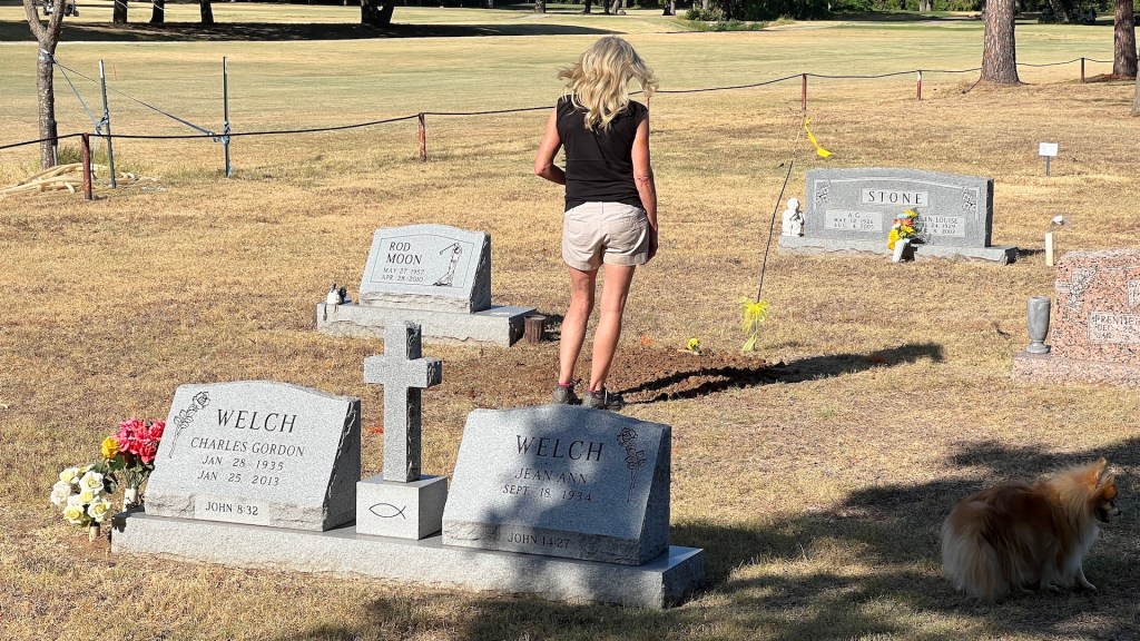 We buried him at an old, serene cemetery on a bright sunny morning like that one when I had last talked to him. I put his vault of remains in the grave myself, my husband placed white lilies on top, then we covered it together. A yellow cemetery flag and metal pin marked his spot until we returned at a later time with his gravestone. I secured a yellow rose in the dirt from a gifted memorial spray.